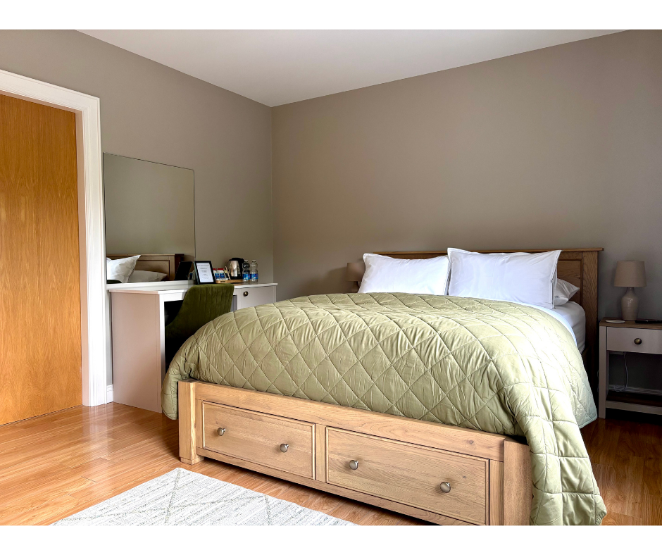 Designed with comfort and ease in mind, our Accessible Room provides a calm and spacious setting for two guests. The room includes a private en-suite bathroom, tea and coffee facilities, clothing storage, a dressing table, and a TV. A continental breakfast is included, along with full access to our communal areas.